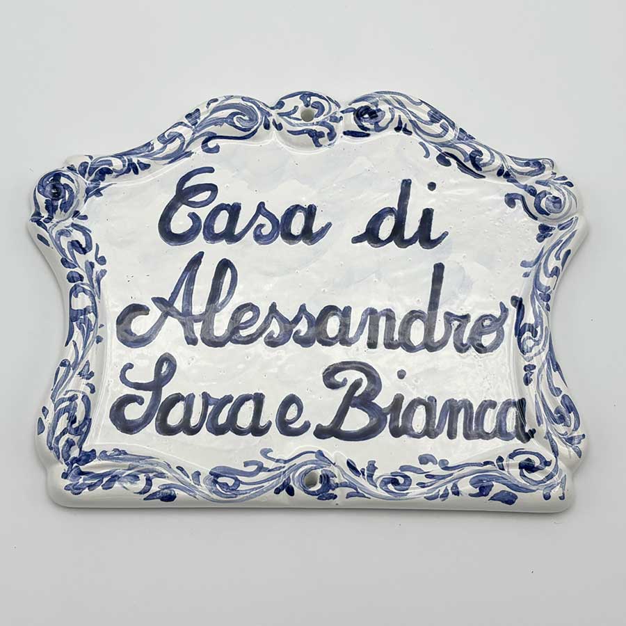 Proprio per il fatto di essere dipinta a mano può essere realizzata a piacimento del cliente sia a livello di decorazione che di colore che di scritta o numero civico.