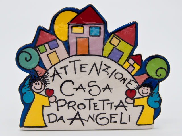 Casa protetta da angeli, targa con frase lavorata e dipinta a mano